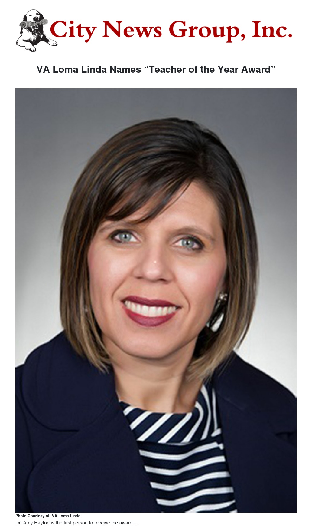 Dr. Amy Hayton is the recipient of the first annual VA Loma Linda Healthcare System “Teacher of the Year Award” for academic year 2017-2018.